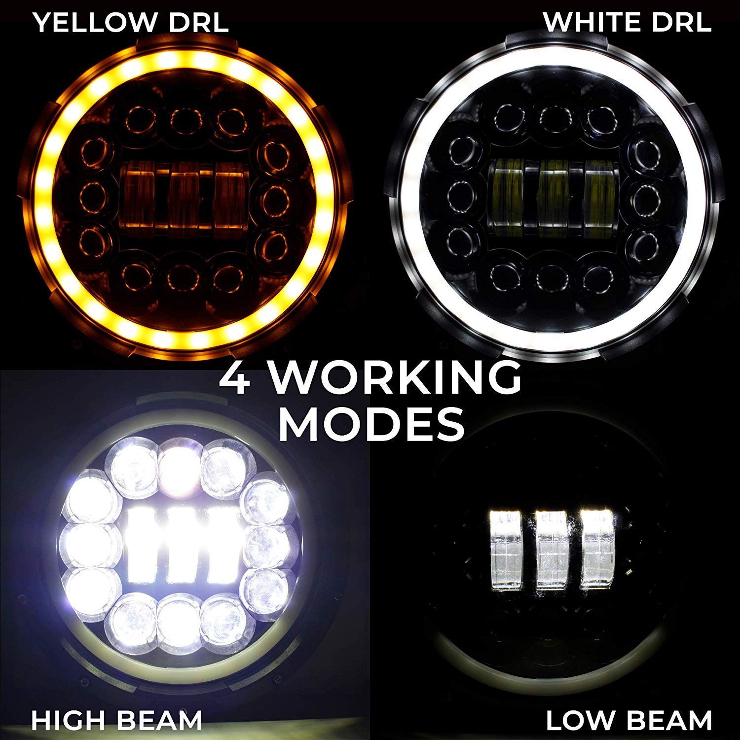 • Ensures LED low beam, led high beams, and multi-function halo ring. Integrated turn signal function in white, wiring required